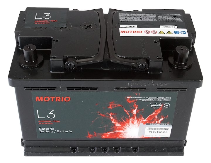BATERIE MOTRIO L3 70AH 620A 8550503612 Referinta OE Dacia Renault 7711947965 Lungime 278 X Latime 175 X Inaltime 190